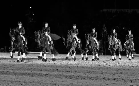Riding Friesian Connection’s Mintse 384 in the famous ten-horse dressage freestyle, Brad delivered a nearly flawless performance under the lights, accompanied by a full orchestra and in front of a near sell-out crowd.